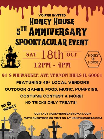 Contact us to host your next event at the Honey House! With a open front lawn and a cozy indoor space, possibilities are endless!